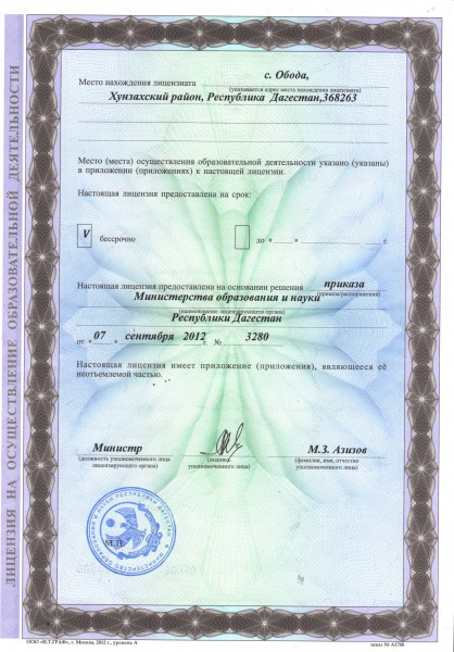 | Адрес местонахождения образовательной организации* | 368263, Республика Дагестан, Хунзахский район с. Обода ул.Центральная 56 А |